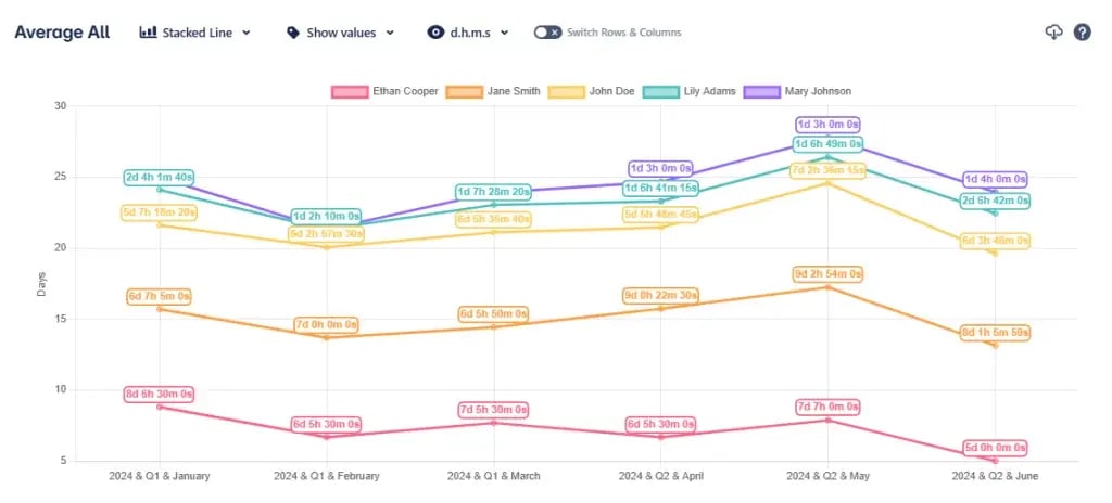 This is a game-changing feature. Unlike Jira’s native reports, Timepiece is built on the full issue history. It accurately adds up the total time an issue spends in any status, no matter how many times it goes back and forth. This provides a trustworthy calculation that reflects the complete effort for every issue.