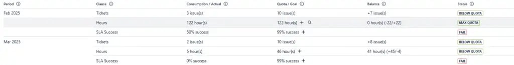 But service contracts in Jira usually don’t keep pace with that. They are fixed. You typically get a set amount of time or tickets per month. If you don’t use them, they vanish. If you need more, you hit a wall or create Amends to add extra quotas.