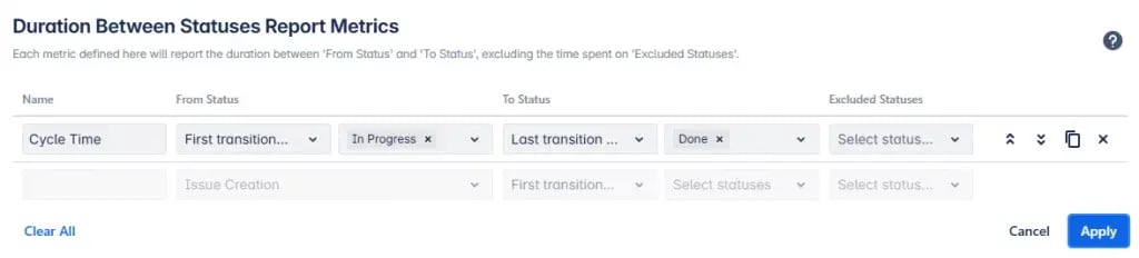 Next, you need to define what Cycle Time means for your team. Generally, it’s the time from when work begins on an issue until it’s completed, excluding any time spent waiting in the backlog.